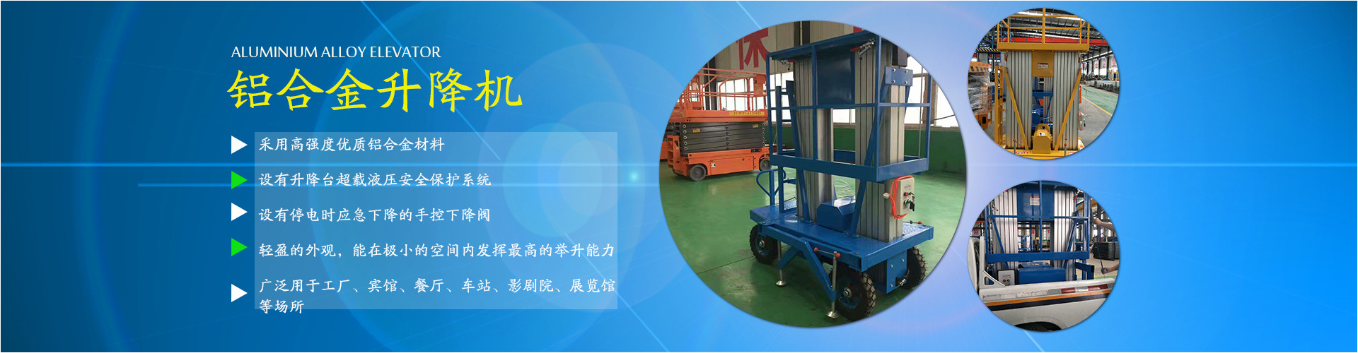 公司主要經營:液壓貨梯、升降平臺、搬運車、叉車及各種液壓設備等。并承接升降平臺出租業務。 產品廣泛用于:港口、電力、鋼鐵、造船、石油化工、礦山...